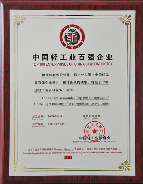 中国·350vip8888新葡的京入选中国轻工业百强企业