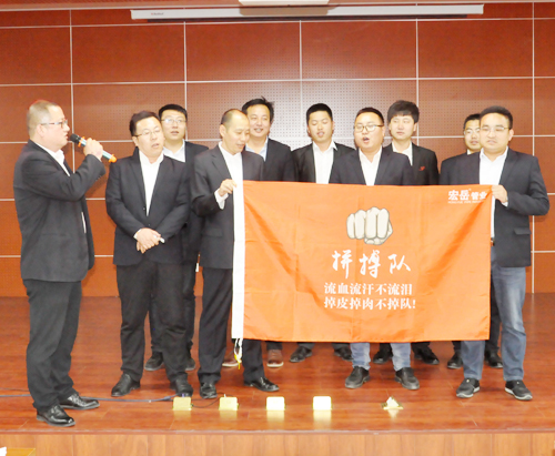 4月3日,中国·350vip8888新葡的京集团营销誓师大会在营销中心热血开展! 全员参与,激情动员,中国·350vip8888新葡的京销售精英们组成十个战队,并确立自己的队长、队名、队旗、队标及队呼。在大会上各战队“亮队型、展风彩、表决心”,队员们慷慨激昂的表态发言,点燃了营销人员的满腔热情。