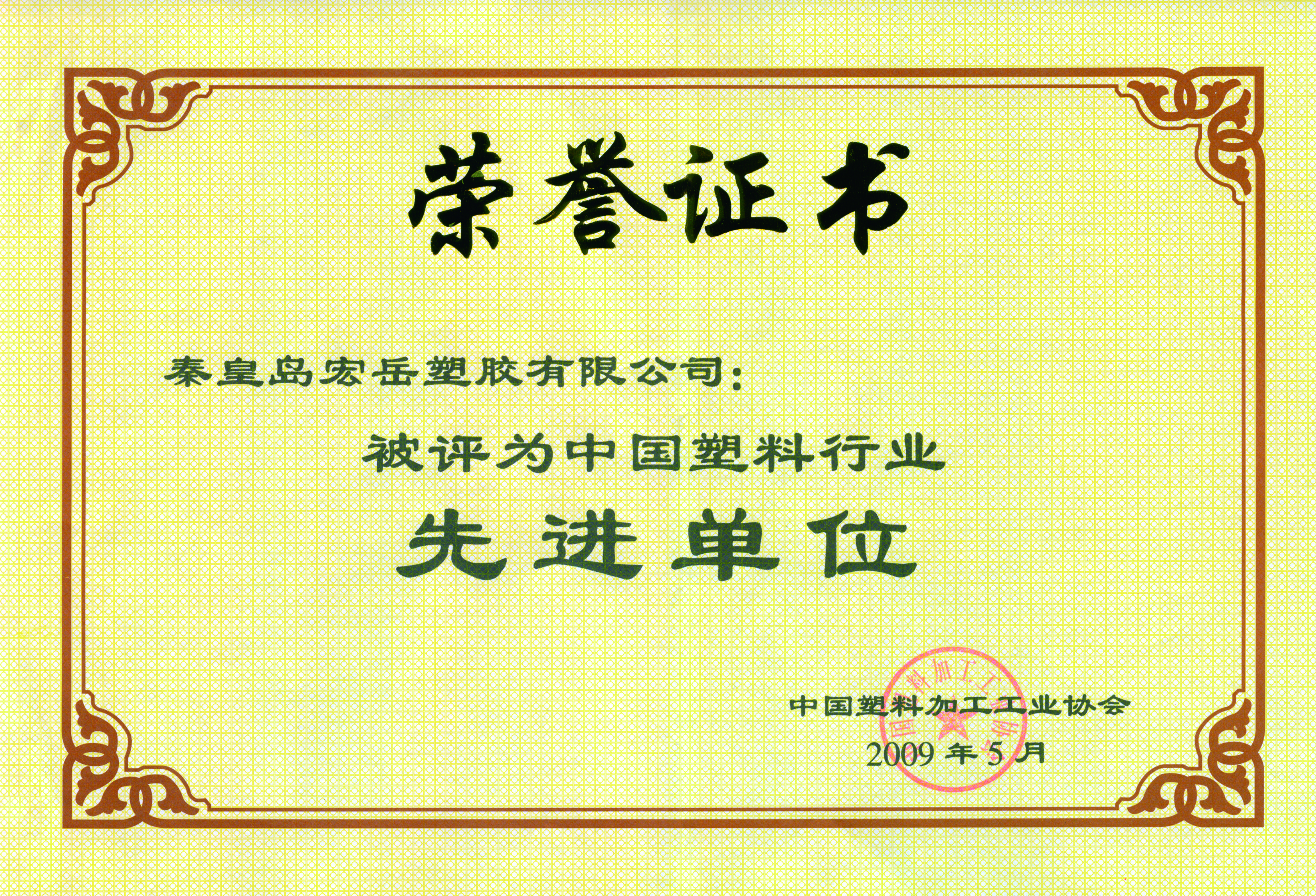 中国·350vip8888新葡的京公司喜获“中国塑料行业先进单位”荣誉