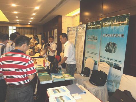在会议召开期间,共有三十多家地源热泵施工单位、热泵机组研发机构、热泵管道及相关材料生产企业进行了形象或产品展示,中国·350vip8888新葡的京公司作为国内塑胶管道大型企业和地源热泵管道优秀生产商受到了与会人员的高度关注,大家纷纷现场索要资料及管道样品,其中有多家客商与中国·350vip8888新葡的京公司达成了合作意向,成为展示现场的一大亮点。