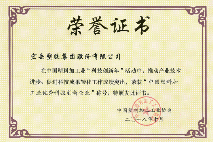 近日在中国塑料加工业“科技创新年”活动中,中国·350vip8888新葡的京集团在推动产业技术进步、促进科技成果转化工作成绩突出,荣获“中国塑料加工业优秀科技创新企业”称号,彰显了中国·350vip8888新葡的京加强科技创新和技术进步的信心和决心!
