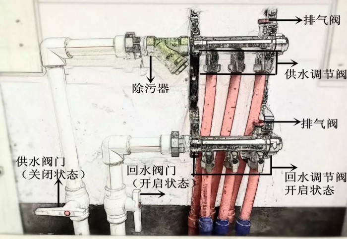 5、打开分集水器上各路供回水调节阀和暖气供水总阀门。