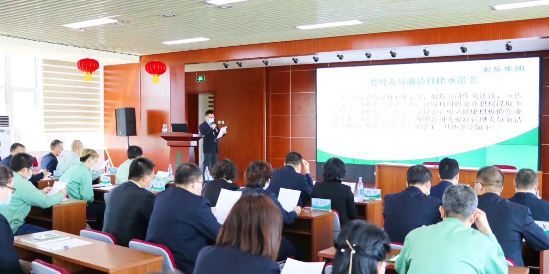 随后集团公司总经理与各板块高管签订了《2020年度安全生产责任状》,核定高管安全管理权责,肩负起企业及员工的生产安全责任。会议期间,全体与会人员共同宣读并签署了《廉洁自律承诺书》。