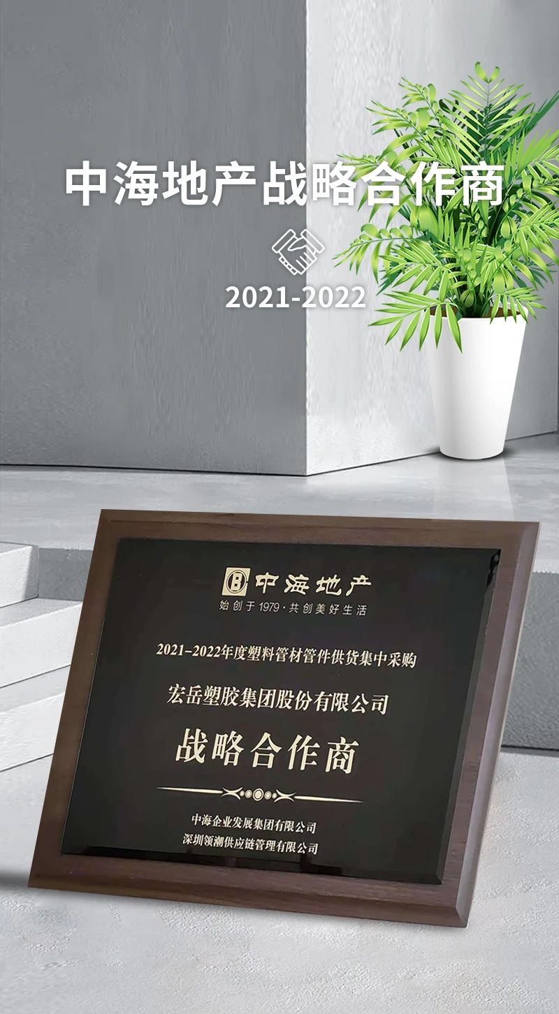 中国·350vip8888新葡的京荣获中海地产2021-2022年度塑料管材管件供货集中采购战略合作商。