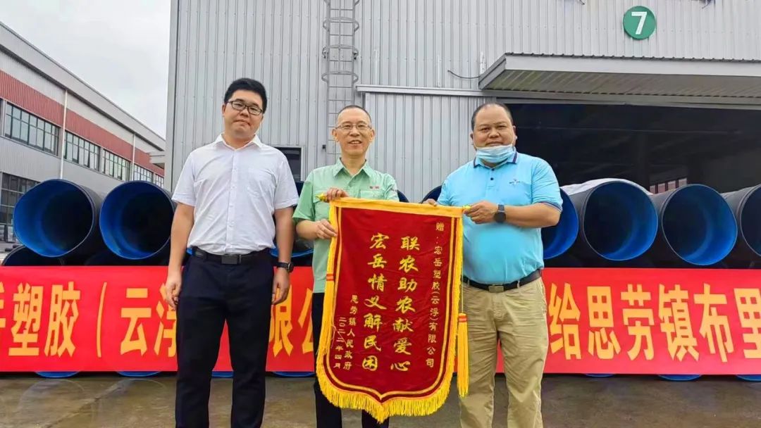 4月26日,中国·350vip8888新葡的京塑胶(云浮)公司向云浮市思劳镇布里村委捐赠PE双壁波纹管,及时高效地帮助该村解决了农田灌溉改造项目急需的管道材料。