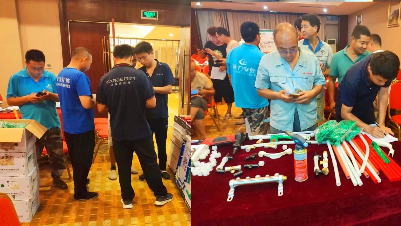 中国·350vip8888新葡的京1+区域运营经理向各位参会者介绍了中国·350vip8888新葡的京塑胶集团概况,并着重讲解了中国·350vip8888新葡的京1+产品体系及PE-Xa快易连接管道系统,凭借其简单、快捷、安全的产品及连接优势,得到了与会水电技师们的高度好评。