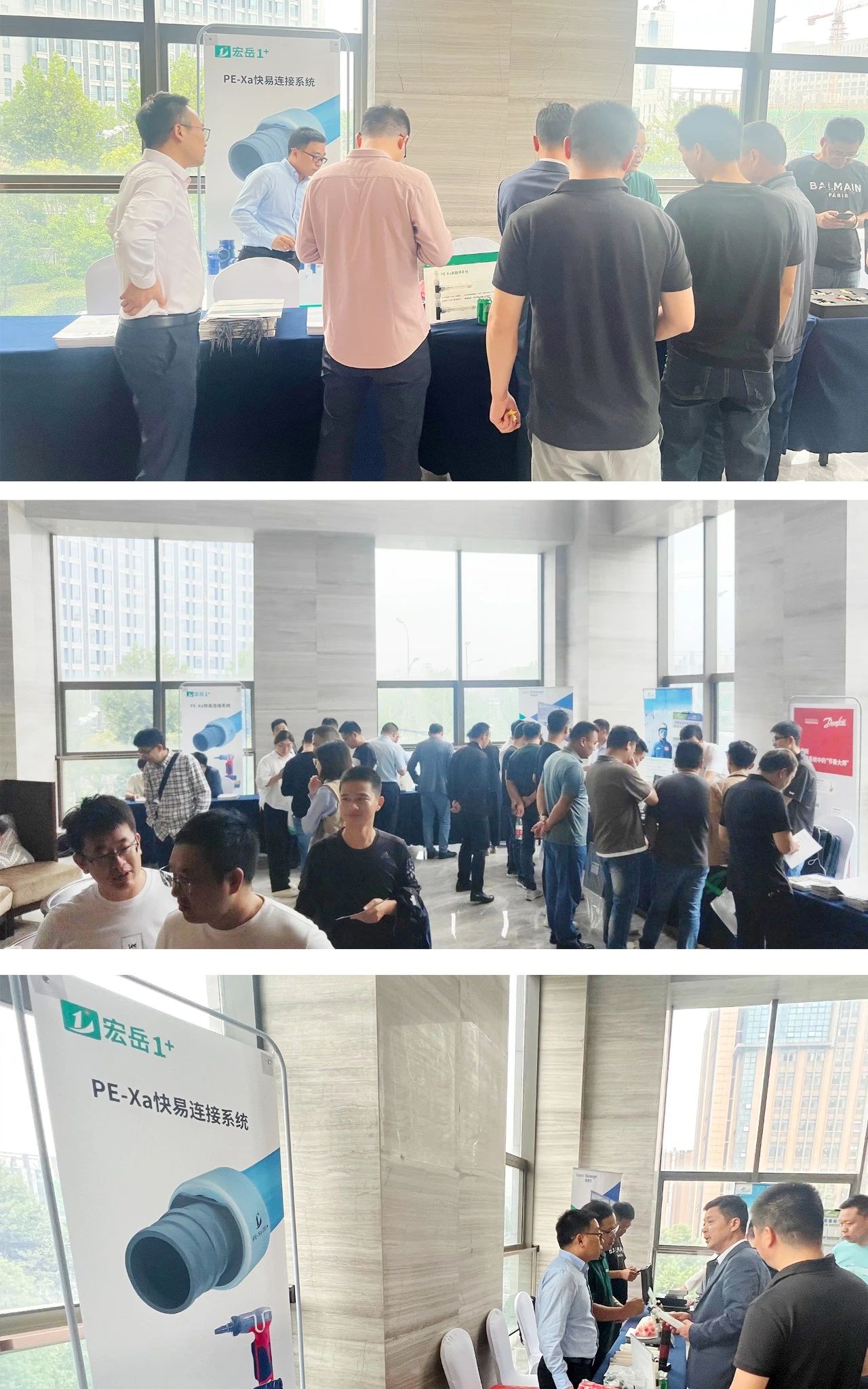 会议现场,中国·350vip8888新葡的京集团高级技术工程师陈工就集团规模概况做简要介绍,并就PE-Xa快易连接系统的特点以及在两联供管路安装上的优势进行详尽讲解。现场展台重点展示了PE-Xa快易连接管道系统,参会者纷纷驻足停留咨询了解、连接实操,此系统连接凭借其简单、快捷、安全的产品及连接优势,受到了与会者们的一致好评!