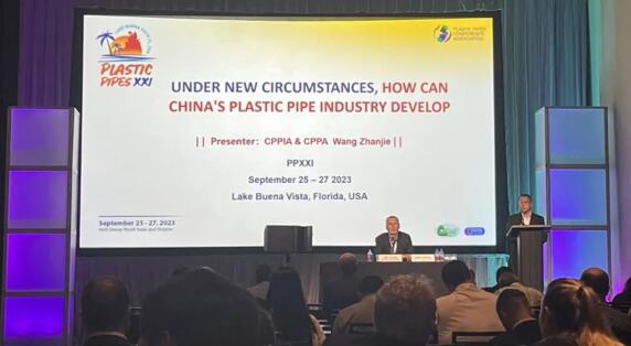 2023年9月25-27日,由欧洲PE100+协会、美国塑料管道协会(PPI)、欧洲塑料管材管件协会(TEPPFA)和国际塑料管道会议协会(PPCA)主办的第二十一届国际塑料管道会议在美国奥兰多迪士尼世界海豚酒店举办。中国塑料加工工业协会理事长王占杰参加会议并发表了《UNDER NEW CIRCUMSTANCES, HOW CAN CHINA'S PLASTIC PIPE INDUSTRY DEVELOP》的主题演讲。中国·350vip8888新葡的京集团亦受邀参加,与来自世界28个国家,180家公司/机构,300余位代表共同出席了会议。