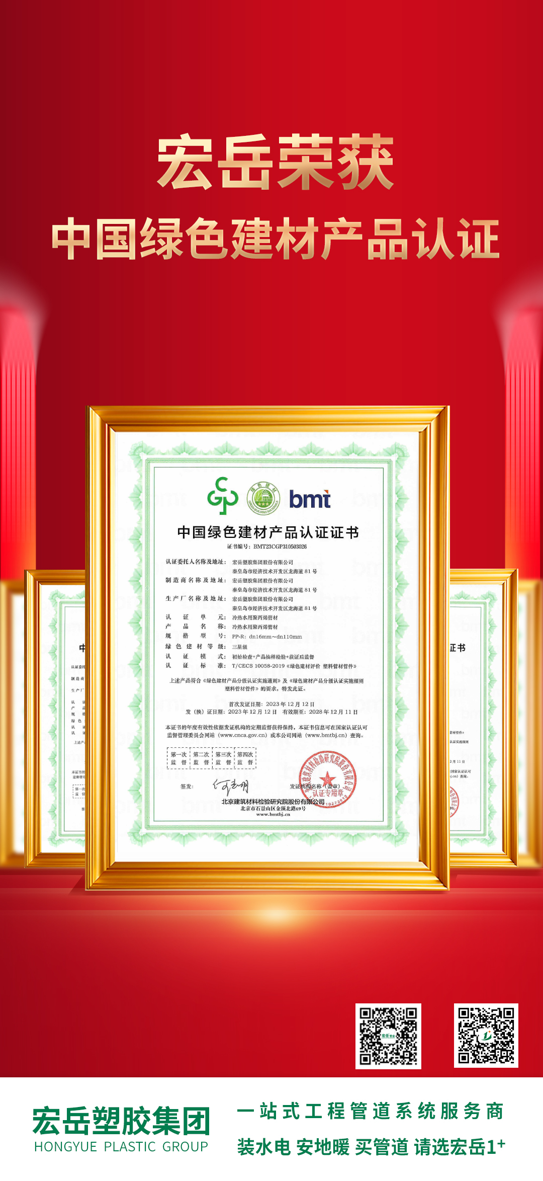 中国·350vip8888新葡的京获得中国绿色建材产品认证,本次认证对PPR、PVC、PE、PE-Xa、PE-RT管材管件等11个单元的系列产品,以环保、节能、节水、循环、低碳等评价维度进行了相关审核,中国·350vip8888新葡的京集团顺利通过。